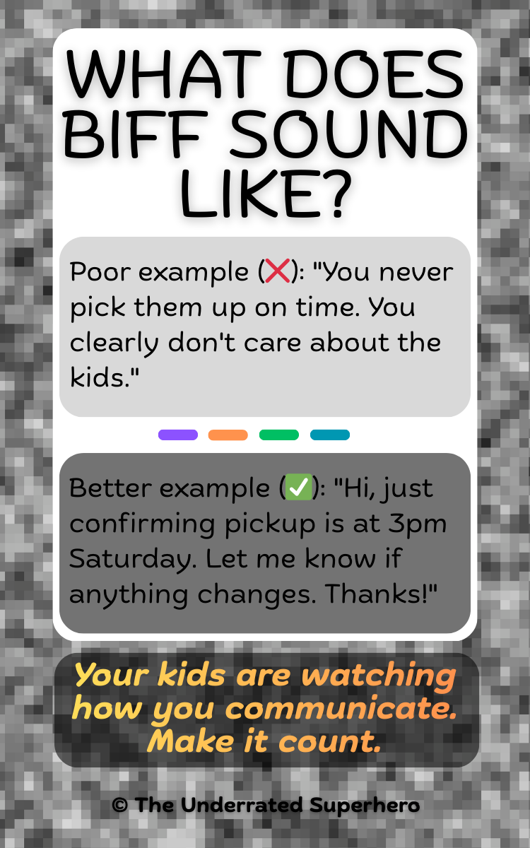 BIFF is one of the most effective tools for managing high-conflict communication, whether it's with a difficult co-parent, a probation officer, a landlord, or anyone who triggers a reactive response.