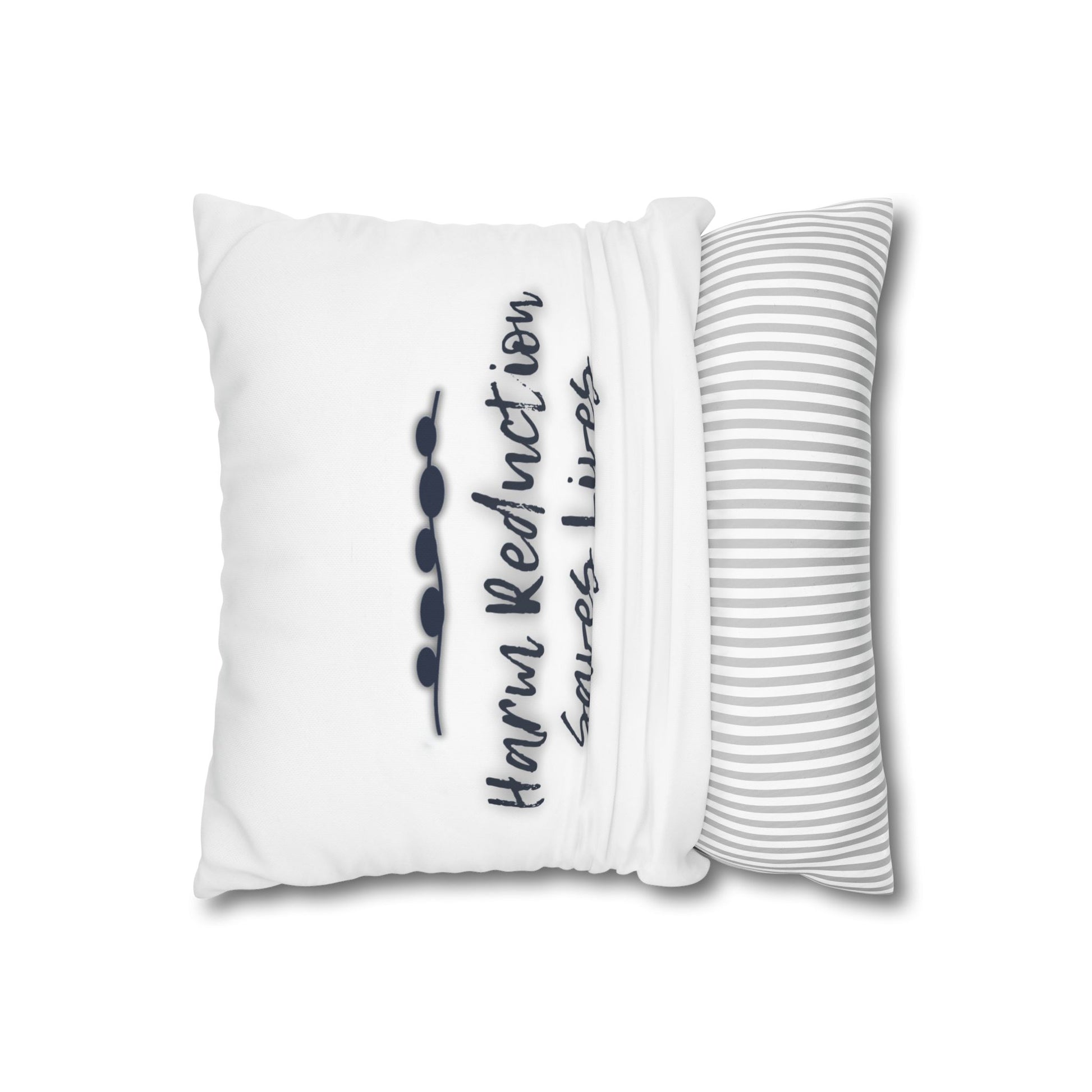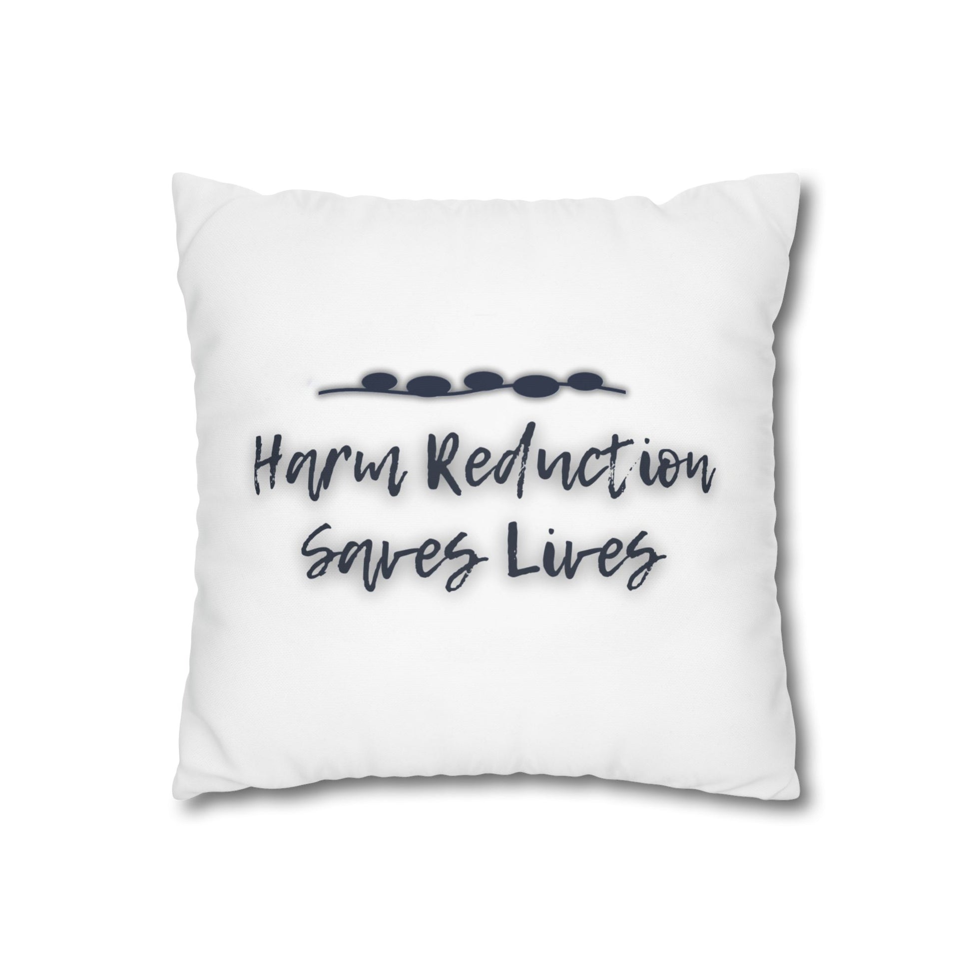 This clean, minimalist pillow brings harm reduction philosophy into any space with quiet confidence. The simple black text on white works everywhere—professional offices, treatment centers, homes—without compromising the power of the message.