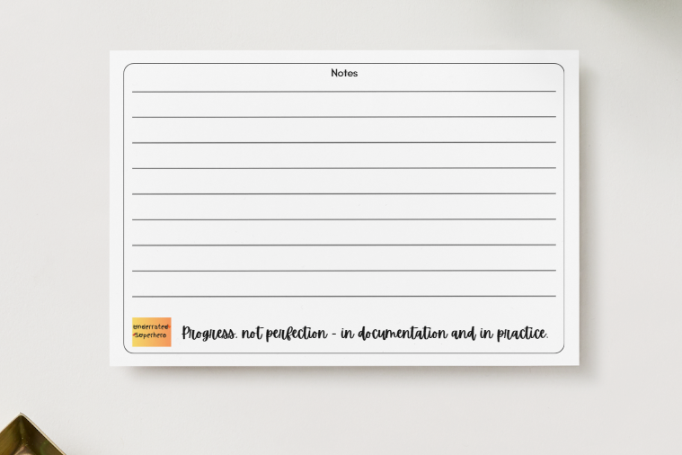 Stop losing critical session details when documentation piles up. These professional cardstock cards give you a 60-second system for capturing what happened immediately after each session, so when you finally sit down to write the full note—whether it's an hour or three days later—you'll remember everything that matters.